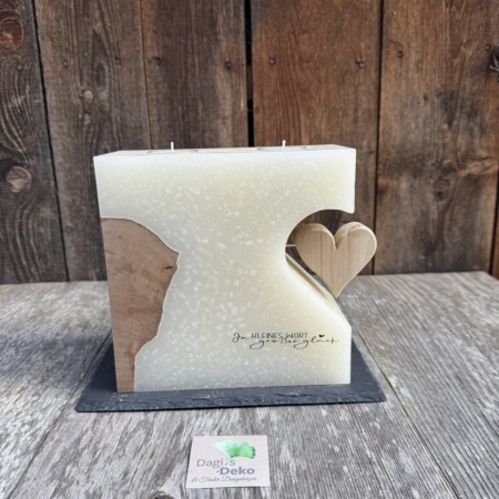 • Hochzeitskerze mit herausnehmbaren Holzherzen