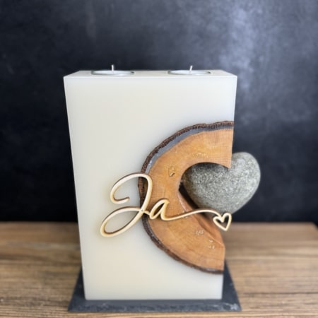 • Hochzeitskerze mit Holz