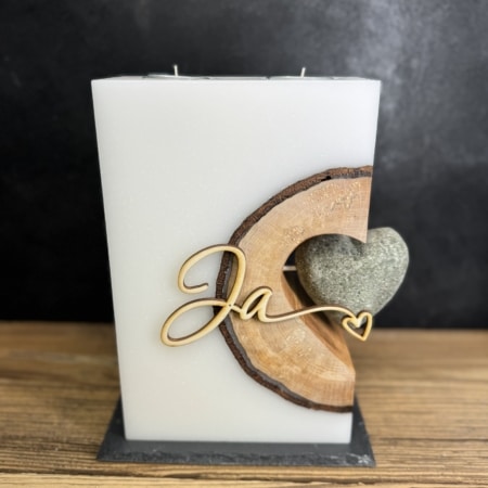 • Hochzeitskerze mit Steinherz