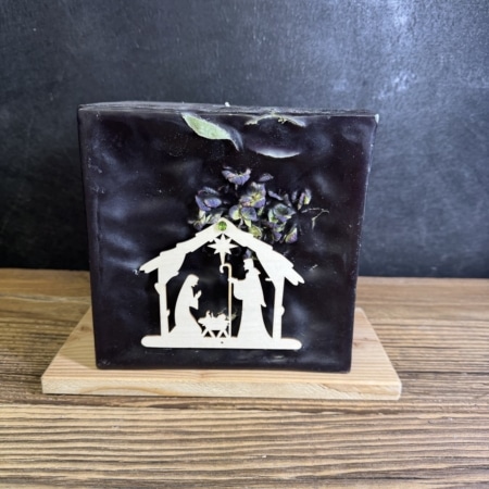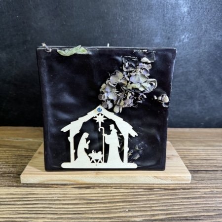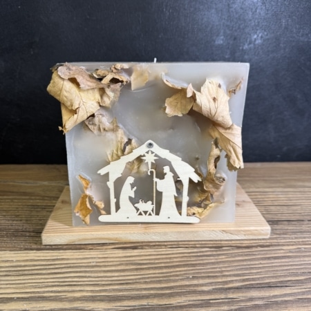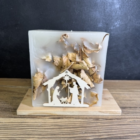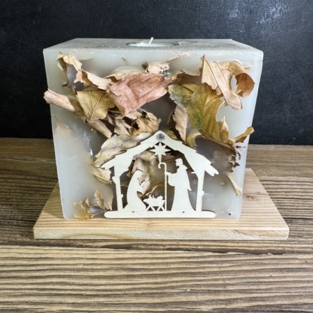 • Krippenkerze mit eingegossenen Blättern