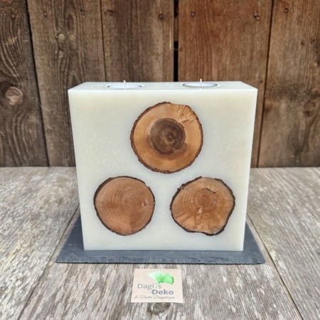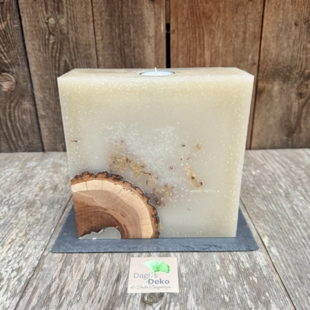 • Hochzeitskerze mit eingegossenem Holz