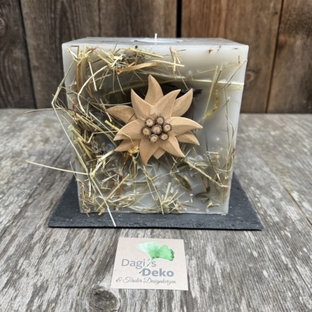 Die Kerze steht zudem auf einer Schieferplatte (bitte separat in den Warenkorb hinzufügen).